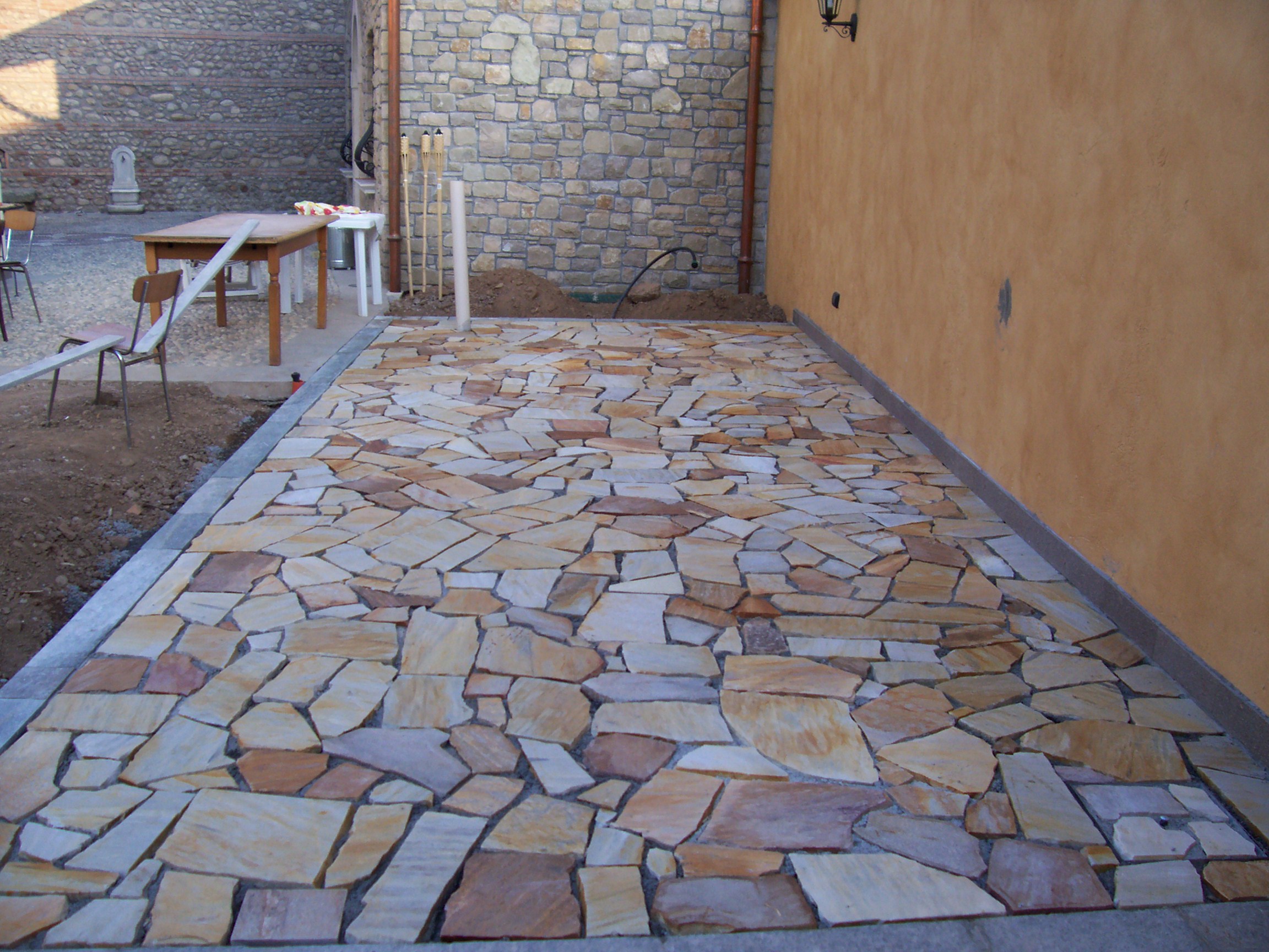 La superficie di questo materiale, ruvida irregolare ed antiscivolo, trova ampio utilizzo negli esterni in particolar modo per le pavimentazioni bordo piscina perché garantisce un elevato confort termico in quanto, rispetto ad altri tipi di pietra naturale, è in grado di mantenere una temperatura superficiale più bassa.